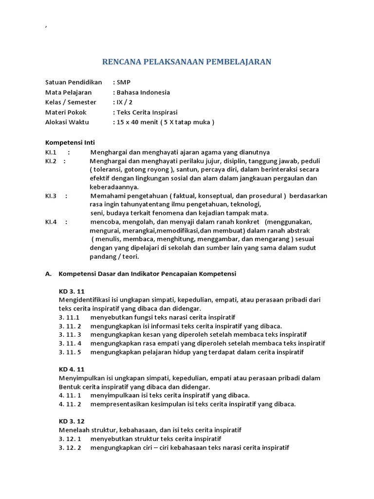 Rpp 9 6 Teks Cerita Inspiratif Pdf